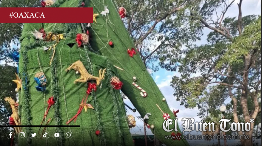 El Espinal, Oaxaca.— El árbol navideño instalado en el parque central de El Espinal volvió a acaparar la atención, esta vez por su incapacidad de mantenerse en pie ante los primeros vientos, lo que desató una ola de críticas y memes en redes sociales contra la presidenta municipal Esperanza Benítez Arizmendi. La estructura, que requirió para su instalación una grúa de gran tonelaje —herramienta normalmente utilizada en obras de infraestructura pesada y no en adornos navideños— amaneció completamente inclinada, con adornos torcidos y zonas prácticamente colapsadas.