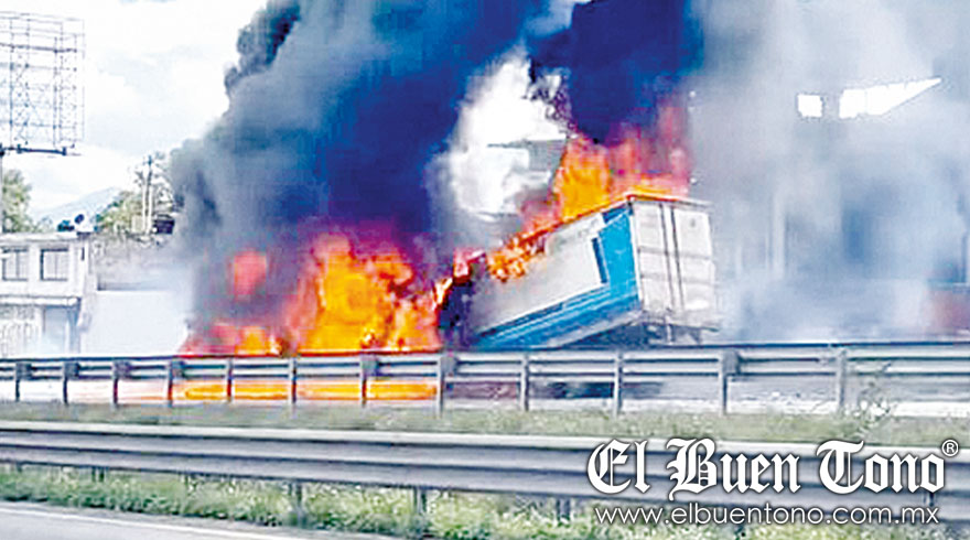 Córdoba.- Un tractocamión que transportaba aceite comestible quedó reducido a cenizas después de incendiarse ayer por la tarde, en el kilómetro 291 de la autopista Orizaba-Córdoba. Este siniestro provocó el cierre completo de la circulación durante más de tres horas y movilizó al personal de los cuerpos de bomberos de Córdoba, Fortín y Amatlán.