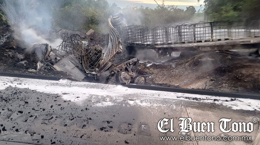 Luego de un trabajo coordinado de personal de los diferentes grupos de auxilio, Bombero, Protección Civil, Capufe y autoridades policiacas, alrededor de las 10:00 horas, se localizó el cadáver del conductor totalmente calcinado.