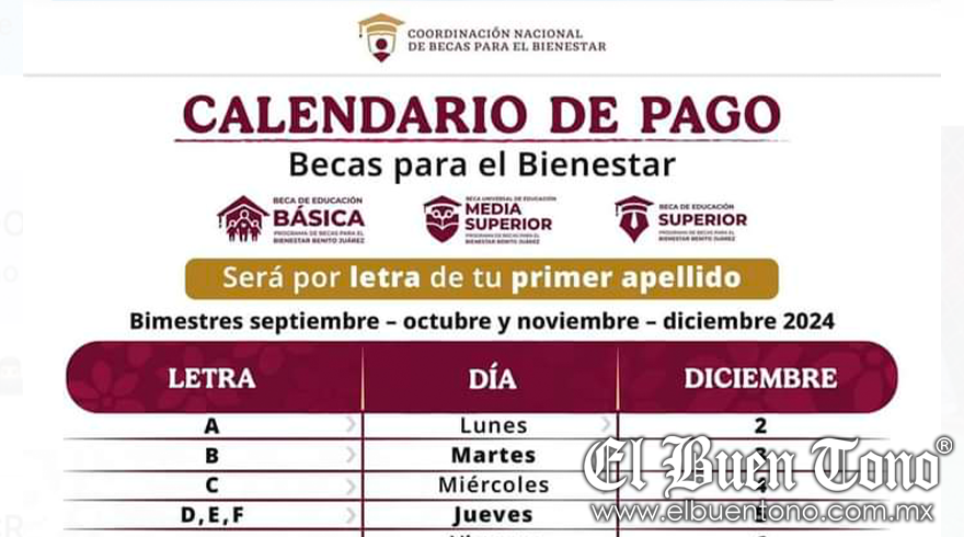 Región.- Hoy comienzan los pagos de las Becas para el Bienestar correspondientes a los bimestres septiembre-octubre y noviembre-diciembre. Los beneficiarios que ya tienen su tarjeta del Banco del Bienestar podrán recibir su pago según la letra de su primer apellido.