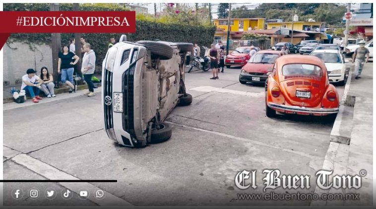Según testigos, el conductor tomó a exceso de velocidad la vuelta hacia la calle 5, lo que provocó que perdiera el control y volcara. La camioneta golpeó a un “vocho” que estaba estacionado y quedó volcada de lado, bloqueando la vialidad en esa zona.