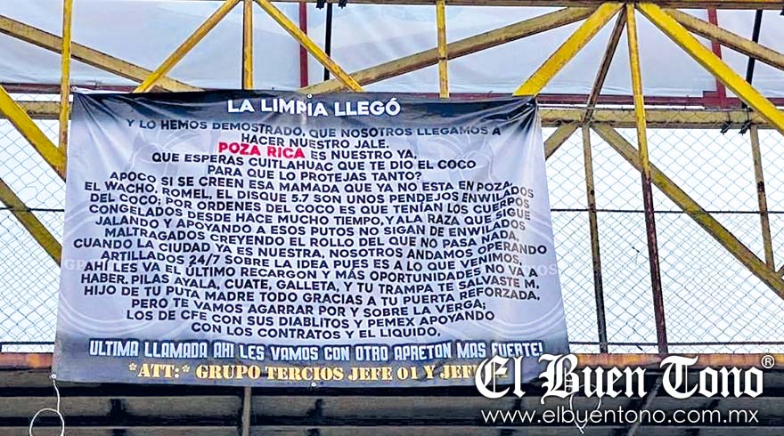 Además, las autoridades también hallaron una manta relacionada en los barandales del puente peatonal en la localidad de Totolapa, en el municipio de Tihuatlán, una zona cercana y conurbada a Poza Rica.