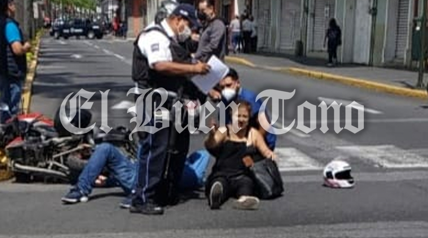 Orizaba.- Una pareja de motociclistas fue arrollada de forma aparatosa por el conductor de un taxi cuando circulaban sobre el bulevar de la avenida Oriente 6.