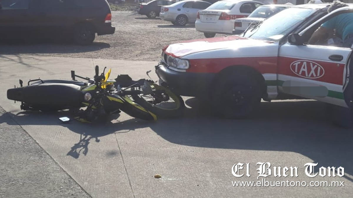 RÍO BLANCO.- Con múltiples contusiones resultó un motociclista en calles de la colonia Unión y Progreso, donde fue arrollado por un taxista que no respetó la preferencia vehicular.
