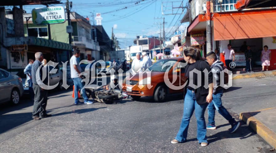 Fortín, Ver.- Un motociclista resultó lesionado al ser arrollado por un automóvil particular, esta mañana en la avenida San Marcial y calle Guanajuato de la colonia Santa Leticia. El lesionado fue atendido por paramédicos del grupo Samuv, mientras que peritos de Tránsito Estatal llegaron para tomar conocimiento.