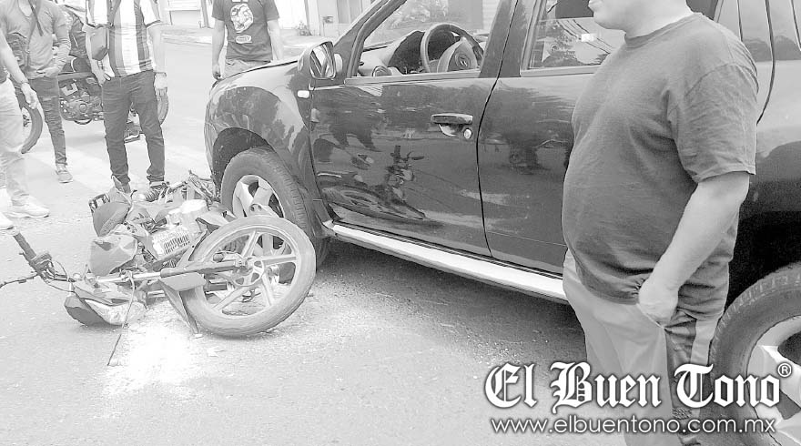 El accidente se registró cuando el motociclista circulaba por la calle con la preferencia de paso, alrededor de las 11:45 horas. Al llegar a la avenida fue impactado por la camioneta color negro, placas de circulación YKD-948-A.