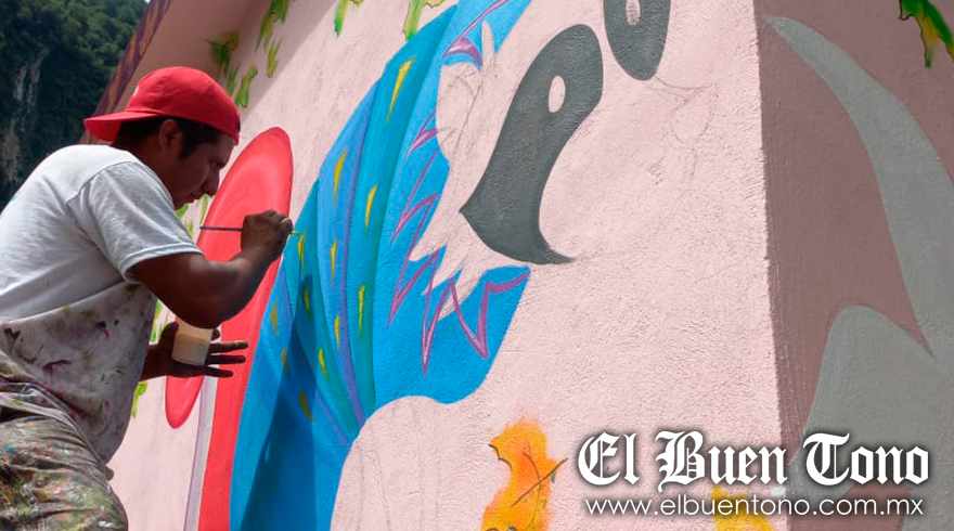 San Andrés Tenejapan.- Artistas locales pintaron de color y tradición las bardas del municipio, durante el segundo Expo Muralismo, que organizaron los integrantes del Colectivo Tenex-Apan.