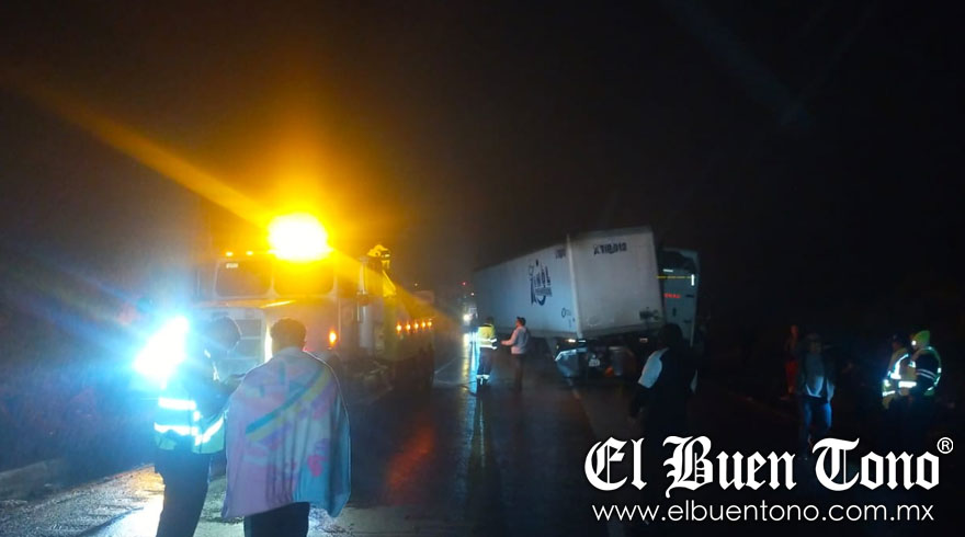 El conductor del tractocamión International perdió el control y quedó atravesado, ocasionando el choque por alcance con una camioneta verde Avalanche, Chevrolet y una unidad blanca Econoline, Ford.
