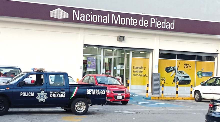 Orizaba.- De un cuantioso botín se apoderó una pareja de delincuentes, quienes la tarde de ayer irrumpieron en la sucursal del Nacional Monte de Piedad que se ubica sobre la avenida Cri-Cri y, a punta de pistola, asaltaron a los trabajadores y a varios clientes.