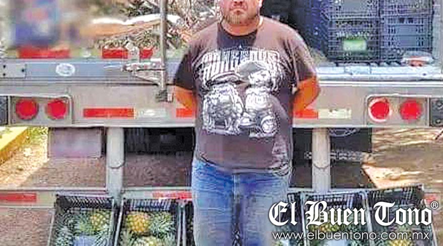 El tractocamión trasladaba toneladas de piña, llevando en su interior un cargamento con más de 300 kilos de polvo blanco aparentemente cocaína oculta en rejillas con la fruta.
