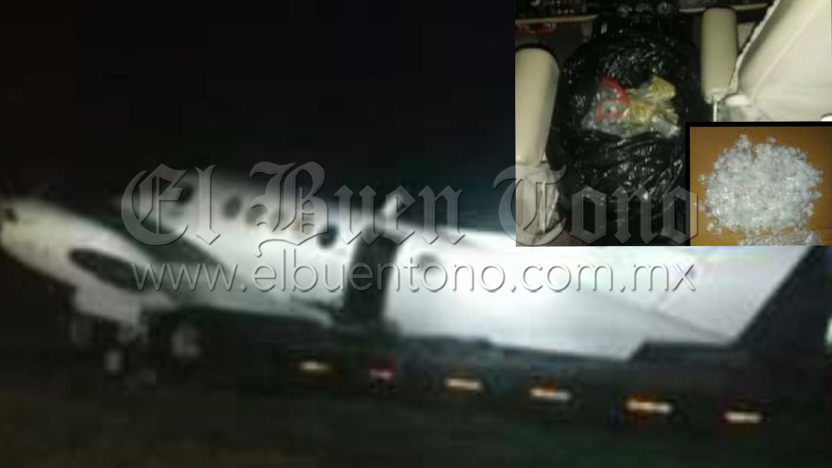 Derivado de un reporte ciudadano sobre la presencia de personas armadas a bordo de camionetas en el sitio, los efectivos implementaron un operativo de búsqueda y localización de los presuntos implicados; al acudir al lugar, detectaron entre la maleza una avioneta Súper King, tipo Air B 200, NIV BB766, 3578A y 4689A, en aparente estado de abandono, que contenía 608 dosis de cristal y 209 dosis de marihuana.