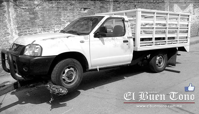 La camioneta Nissan de redilas color blanco, con placas de circulación XU-26-049 del Estado, presuntamente habría sido abandonada durante la madrugada a las afueras del corralón de una empresa de grúas.