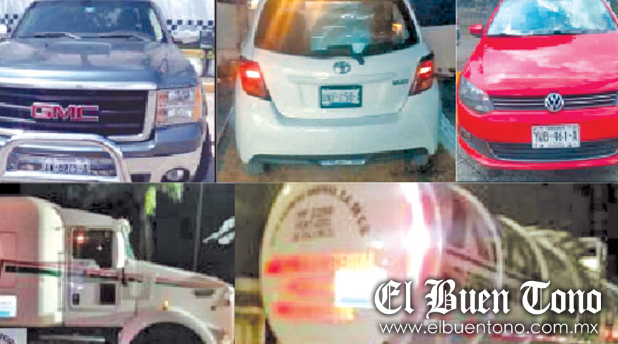 Las unidades fueron encontradas por elementos de la Policía Estatal y entre ellas están: un Volkswagen Vento, placas YUB461A; un Toyota Yaris UNF258A, una motocicleta Yamaha NIV 3CCKE07927A001324, un tractocamión Kenworth 39AK6H y dos pipas matrículas 63UE1H y 64UE1H.