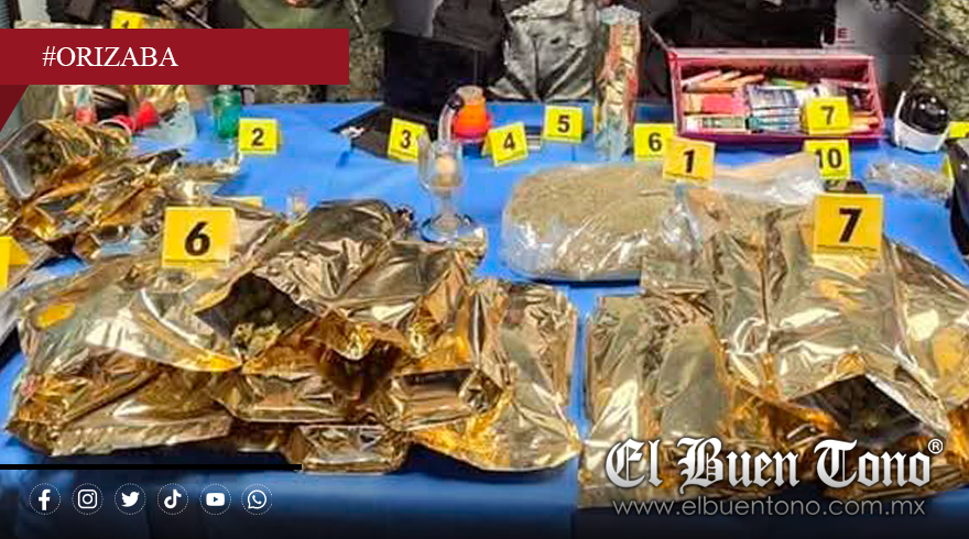 Orizaba.- Elementos de seguridad estatal y federal aseguraron marihuana y varios artículos para su venta y consumo, así como una laptop, una cámara de videovigilancia y un celular.