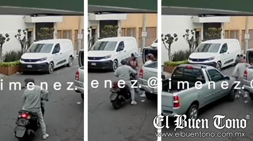 En un video compartido por el periodista Carlos Jiménez, se observa el momento exacto en que dos delincuentes están asaltando a una mujer, sin embargo, el justiciero llega a evitarlo.