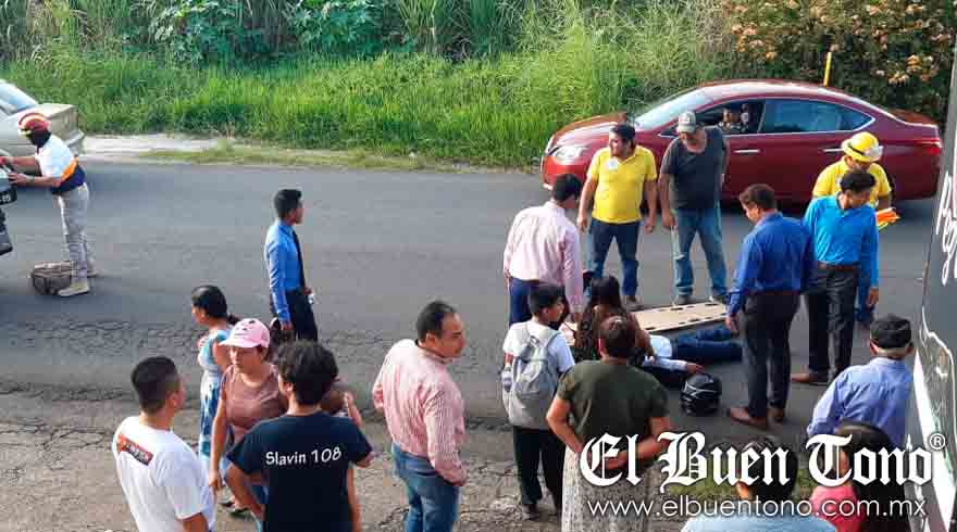 Atoyac.- Dos personas fueron atropelladas a la salida de la Villa General Miguel Alemán-Potrero Nuevo por un motociclista.