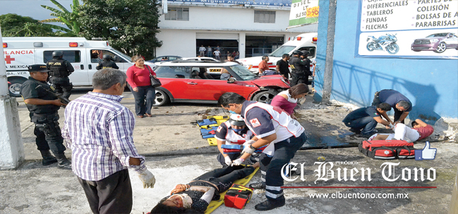 El accidente ocurrió a las 15:00 horas de ayer, cuando el conductor de un mini Cooper, color rojo, placas del estado, cuyo nombre se negó a proporcionar a este reportero, al circular a exceso de velocidad sobre el citado bulevar, perdió el control en un tramo de curva lo que provocó que atropellara a tres personas entre ellas una menor de seis meses de nacida la cual al momento del impacto, fue proyectada varios metros hasta caer al pavimento donde terminó herida de gravedad.