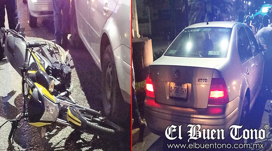 Además de la moto, el vehículo alcanzó a impactar de frente a otro automóvil, por lo que además del joven que resultó lesionado el percance dejó como saldo daños materiales que fueron cuantificados por el perito de Tránsito Estatal.