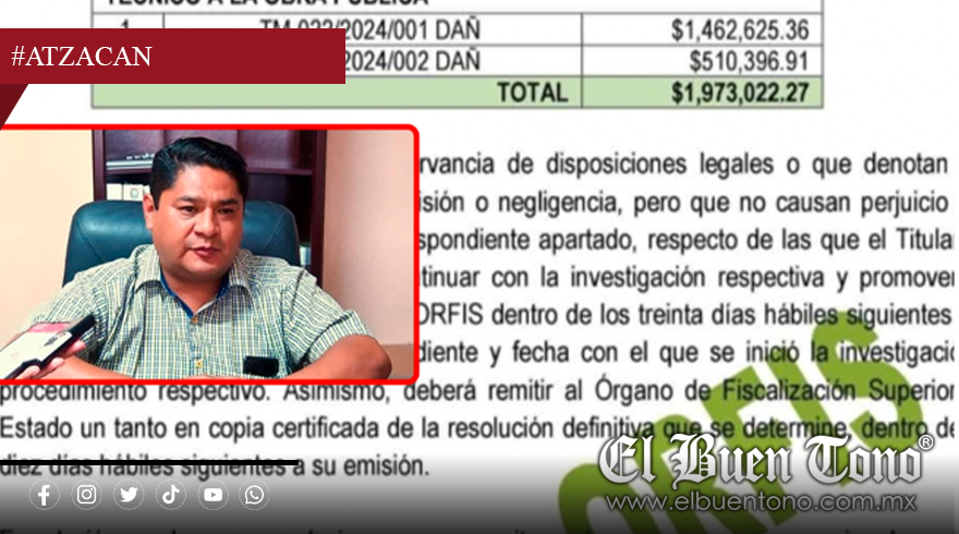 Atzacan, Ver.- Un daño patrimonial por 1 millón 973 mil 022 pesos con 27 centavos fue detectado en la administración municipal de Atzacan, encabezada por Mario Alberto Vargas Amador, correspondiente a la Cuenta Pública 2024, según el informe individual del Órgano de Fiscalización Superior del Estado de Veracruz (ORFIS).