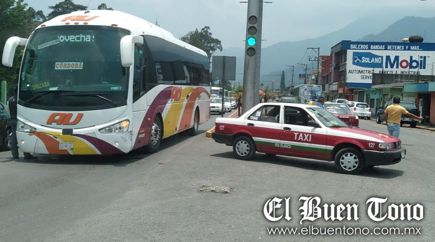 Río Blanco.- Un accidente vehicular se suscitó sobre el bulevar de la avenida Camino Nacional, luego de que el chofer de un autobús de la línea Autobuses Unidos (AU) no guardó su distancia y chocó por alcance contra un taxi.