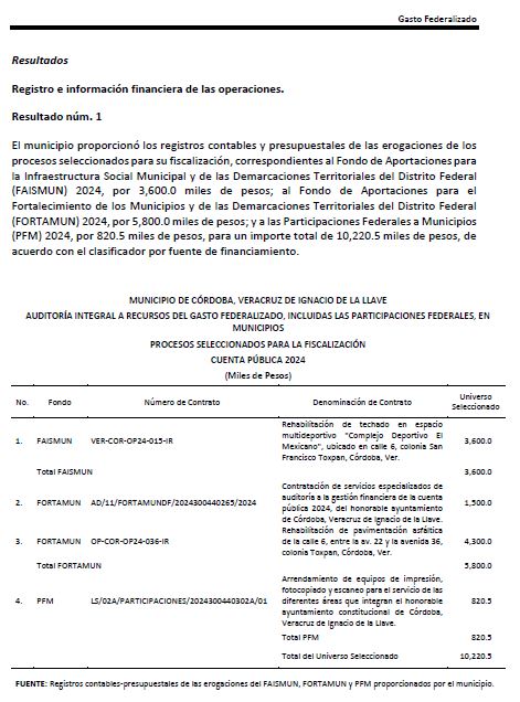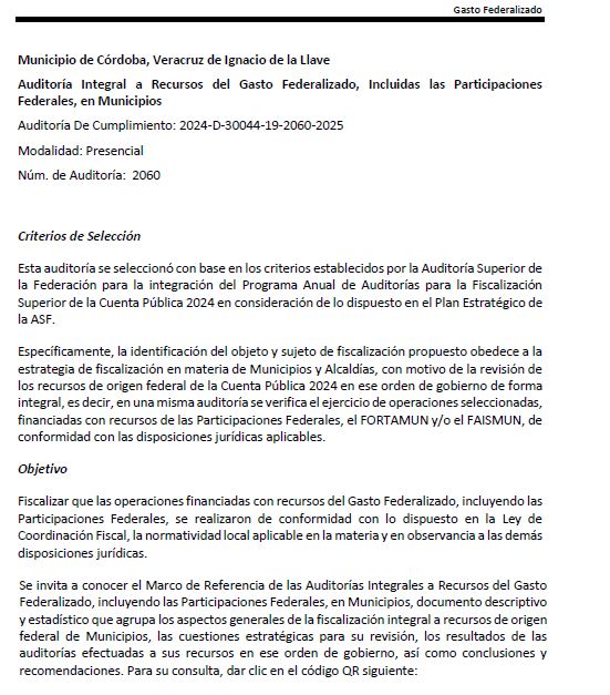 Córdoba.- Aunque la Auditoría Superior de la Federación (ASF) revisó con lupa 10.2 millones de pesos del gasto federalizado ejercido por el municipio de Córdoba en 2024, el resultado final no puede ser más sospechosamente perfecto: cero observaciones, cero irregularidades, cero daños a la hacienda pública. En un país donde las desviaciones de recursos son el pan de cada día, que una auditoría de este calibre termine con un “aprobado general” sin señalamientos merece, cuando menos, un análisis crítico.