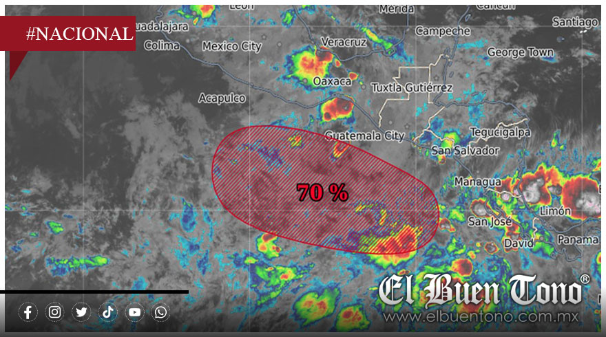 Nacional.- El Servicio Meteorológico Nacional (SMN) informó este domingo que existe un 70 por ciento (%) de probabilidad de que una zona de baja presión que se desarrollará al sur de las costas de Oaxaca y Chiapas evolucione a una tormenta tropical durante los próximos días.