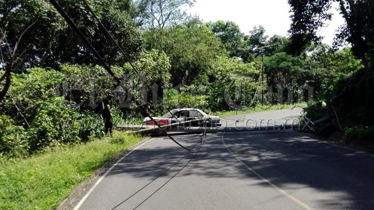 Zentla.- El conductor de un vehículo Nissan-Tsuru, fue el responsable de un accidente en el cual derribo dos postes además de provocar la afectación vehicular sobre la carretera Colonia Manuel González-Cuatro Caminos, tras chocar y posteriormente darse a la fuga dejando el automóvil abandonado, teniendo que intervenir las autoridades de Tránsito Estatal.