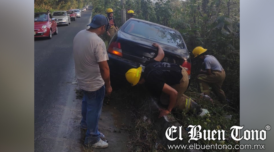 Tomatlán.- Un automóvil estuvo a punto de caer al barranco al salirse de la carretera federal Fortín-Huatusco, entre la ermita y la localidad de Dos Caminos.