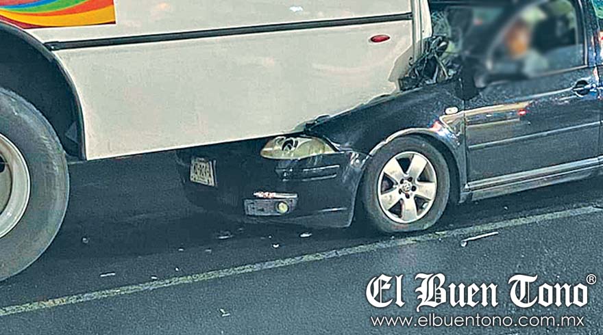 Como resultado del fuerte impacto, el automóvil quedó incrustado debajo del camión. Afortunadamente, su propietario sobrevivió al accidente y fue socorrido poco después por los equipos de rescate de Protección Civil.