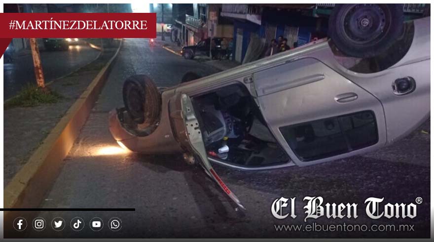 Martínez de la Torre.- Hasta el momento, la Dirección Municipal de Protección Civil no ha informado oficialmente qué provocó la volcadura de un automóvil Nissan Platina en el boulevard Alfinio Flores.