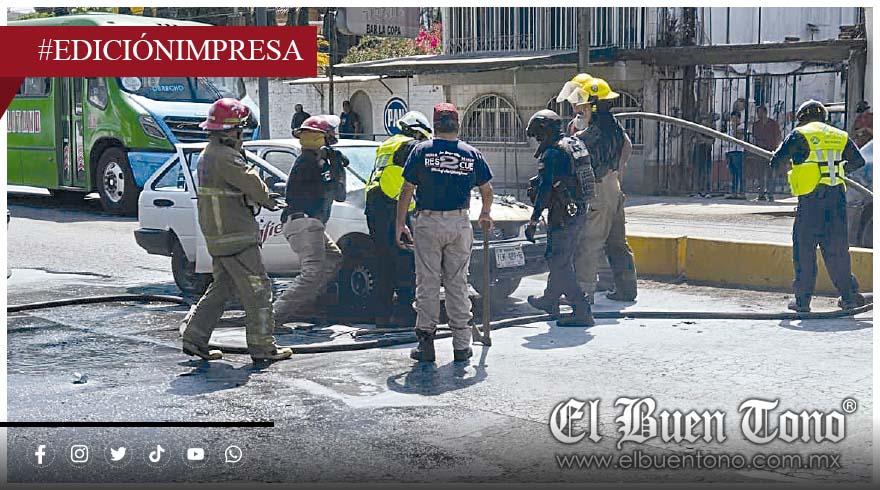 Río Blanco.- Momentos de tensión se registraron el jueves cuando un automóvil se incendió mientras circulaba sobre Camino Nacional, a la altura de la bodega conocida como la ex Bimbo, en este municipio.