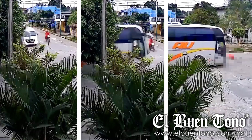 En el video se observa al motociclista circular a exceso de velocidad y sin precaución, termina por impactarse contra un autobús de la empresa AU, marcado con el número económico 4908 y placas de circulación 12HA1S.
