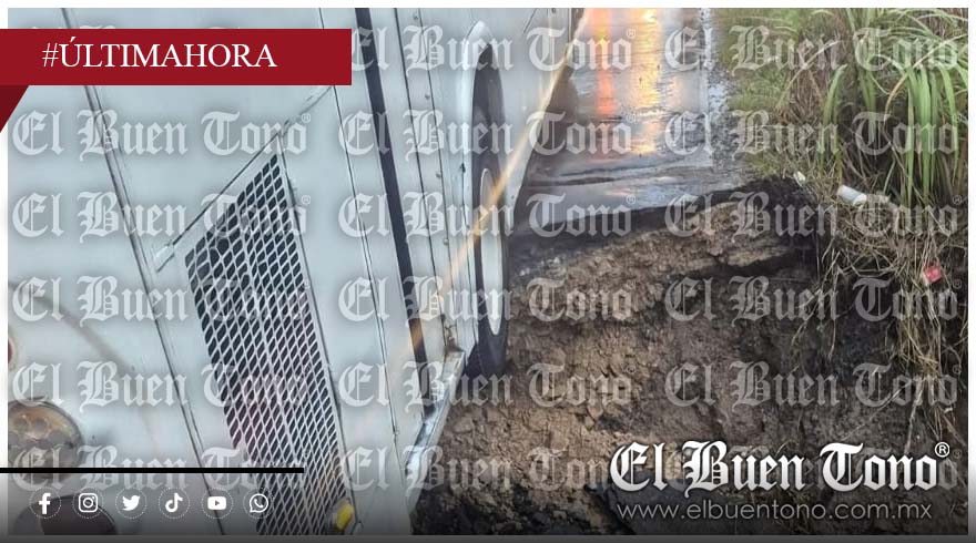 Región.- Un autobús de pasajeros cayó esta tarde en un socavón que se abrió sobre la carretera de la desviación a Potrero, como consecuencia directa de las fuertes lluvias que azotaron la zona. Afortunadamente, el saldo fue blanco, ya que todos los ocupantes de la unidad pudieron ser evacuados sin reportar lesiones graves.