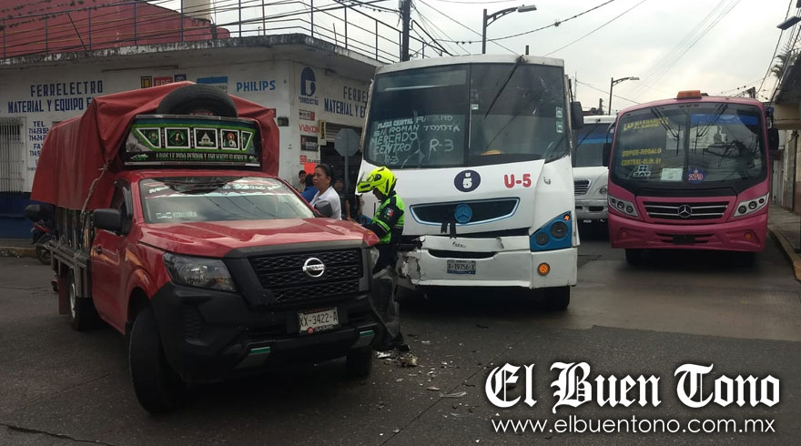 Córdoba, Ver.- Un autobús de la línea Unión de Permisionarios 21 de Mayo chocó contra una camioneta Nissan, manejada por un joven, en la avenida 1 y calle 21, luego de que uno de los conductores no respetara la luz roja del semáforo.