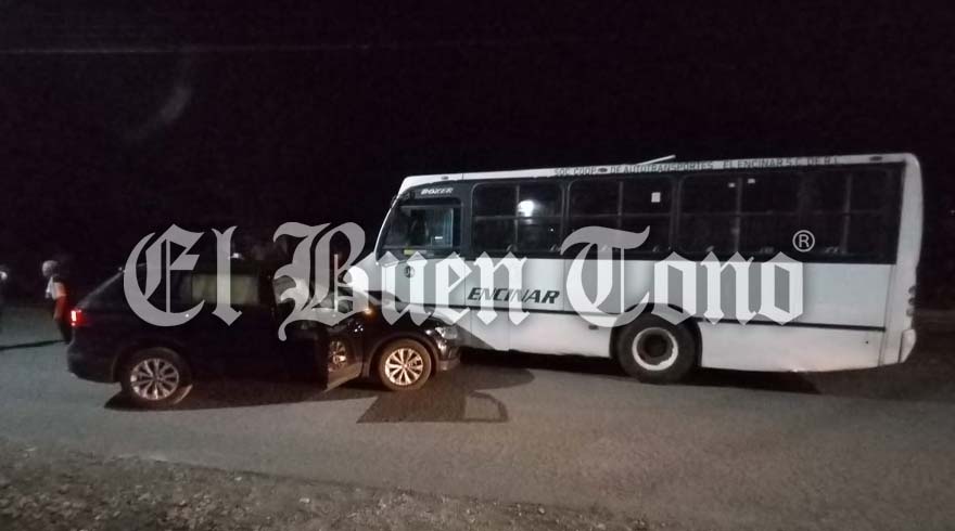 Nogales.- Un choque entre un autobús de transporte urbano y un auto particular, se registró la noche de este martes en la congregación El Encinar, hecho que dejó como saldo a una persona herida.