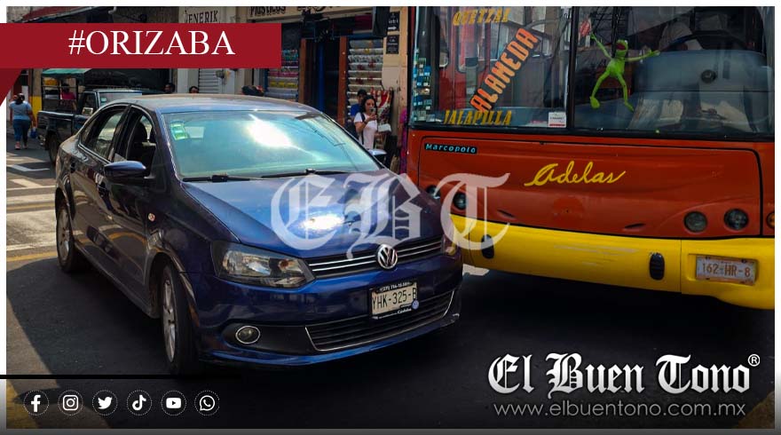 Orizaba, Ver. – Un autobús de la línea “Adelas” chocó contra un automóvil Volkswagen Vento en la Norte 4 y Oriente 7, dejando sólo daños materiales.