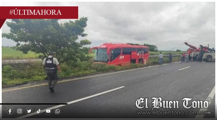 Este miércoles se registró un accidente en la autopista La Tinaja – Cosamaloapan, cuando un autobús de la línea ADO, con número de unidad 0924, salió del camino y terminó volcado a la altura del kilómetro 91+700.