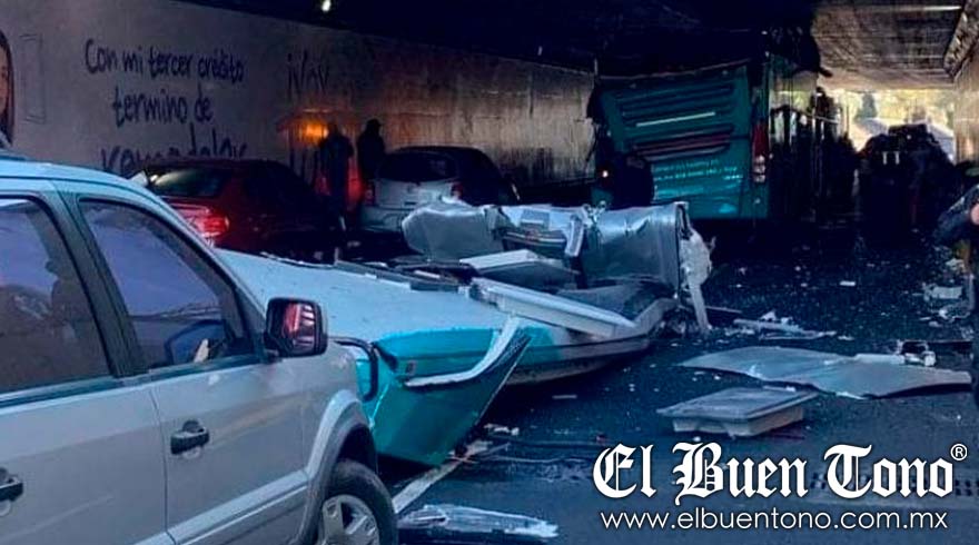 El suceso tuvo lugar la tarde de ayer cuando el autobús, proveniente de Toluca, Estado de México y con destino al estado de Puebla, impactó contra el bajo puente debido a una incorrecta evaluación de la altura por parte del conductor.