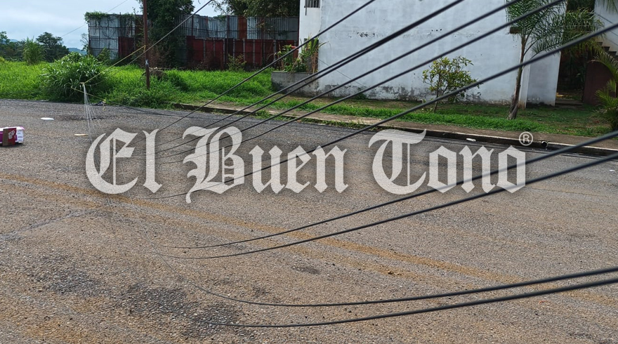 Córdoba, Ver.- Un autobús de la línea 8 de Marzo derribó un poste de telefonía y dañó una luminaria, dejando sin servicio a decenas de familias, esta mañana en la unidad habitacional Lienzos 2, y huyó del lugar.