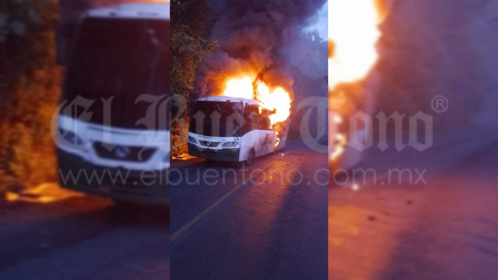 Tlaltetela, Ver.- Un autobús de la línea Azteca se incendió durante la mañana de este lunes, en la carretera estatal a Xalapa.