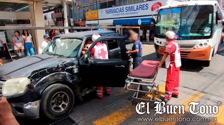 CÓRDOBA.- La avenida 2 calle 11 fue el escenario de un accidente vial que involucró a un autobús de pasajeros de la línea Dorado, con el número de unidad U31, y una camioneta en color negro.