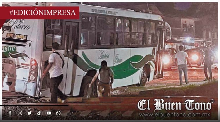 Río Seco.- Un autobús de pasajeros quedó atorado en la zanja de la vía del tren en San Rafael Río Seco, provocando que los pasajeros bajaran despavoridos.