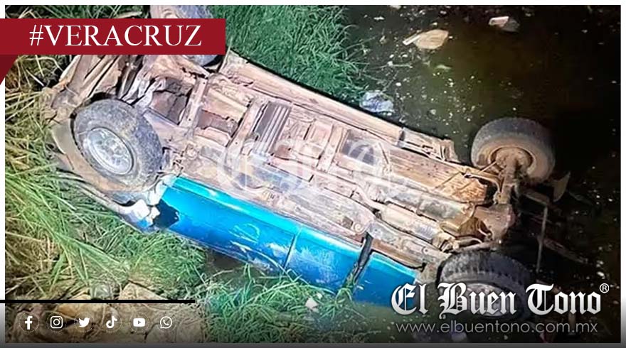 Veracruz.- Un accidente vehicular ocurrió la noche del domingo en el camino Isla-Nuevo Cantón, cuando un automóvil compacto azul se desplomó desde un puente y quedó volcado en un arroyuelo a cuatro metros de profundidad.
