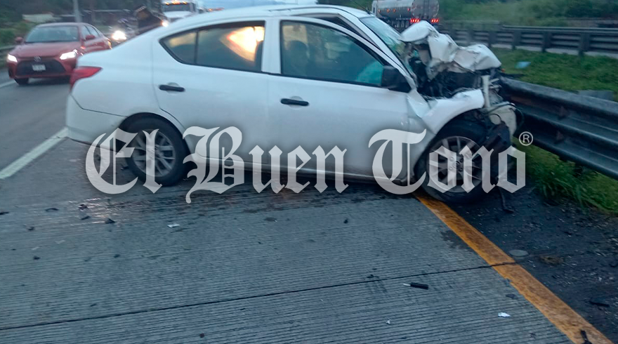 Ixtaczoquitlán, Ver – Un automóvil particular resultó seriamente dañado y su conductor lesionado, al chocar contra la barra de contención, esta mañana de viernes en la autopista Córdoba -Orizaba, en el kilómetro 282, en la comunidad Sumidero.