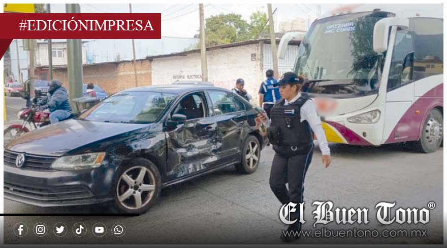 Orizaba.- Un accidente entre un automóvil particular y un autobús de pasajeros provocó el cierre total de la avenida Cri-Cri a la altura de la colonia Abelardo L. Rodríguez. El choque ocurrió en la esquina con la calle Norte 10.