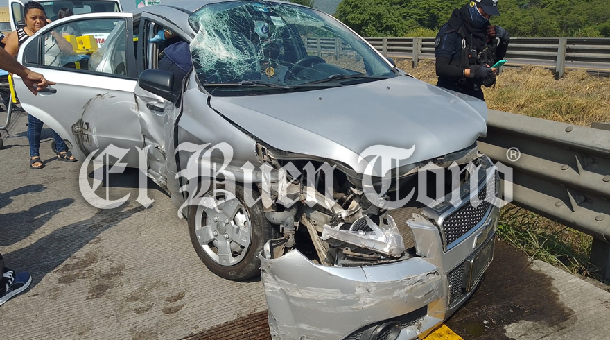 Fortín, Ver.- Seriamente dañado resultó un automóvil Chevrolet Aveo al ser impactado por otro vehículo, durante la mañana de este domingo, en la autopista Orizaba-Córdoba, sin que se registraran personas lesionadas, sólo daños y el cierre momentáneo de la circulación en un carril.