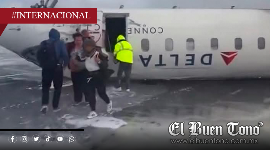 Canadá.- Un avión de Delta Airlines que volaba desde Minneapolis hacia Toronto sufrió un accidente al volcarse mientras intentaba aterrizar en el Aeropuerto Pearson de Toronto, Canadá, el lunes 17 de febrero. La aeronave, que transportaba cerca de 80 personas, terminó boca arriba en la pista, lo que provocó la evacuación de los pasajeros y la intervención de equipos de emergencia.