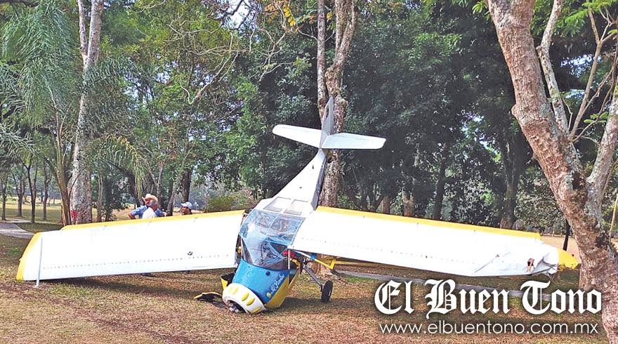En información oficial, el desplome de la aeronave ultraligera de dos plazas, de color amarillo con azul, ocurrió durante la mañana de ayer martes, cuando los empresarios Gustavo Amieva y Ernesto de Gasperín Limón, titular de la notaría 8 y yerno del dirigente cañero de la CNPR, Ángel Gómez Tapia, volaban sobre la zona residencial cuando de repente la aeronave cayó y quedó “clavada” con la hélice en el césped de los campos de golf.