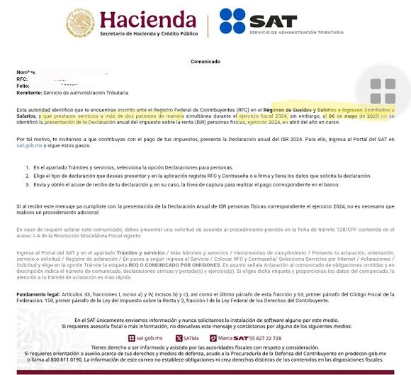 Córdoba, Ver.- Desde el primer momento en que comenzaron a multiplicarse los avisos del Servicio de Administración Tributaria (SAT) por presunta pluralidad de patrones, especialistas en materia fiscal advirtieron que muchos contribuyentes están siendo requeridos a presentar declaración anual pese a que únicamente han mantenido una relación laboral continua. La situación surge cuando en los sistemas fiscales aparecen varios CFDI de nómina emitidos por distintas razones sociales, lo que la autoridad interpreta inicialmente como múltiples fuentes de ingreso, explicó el contador público Guillermo Santos Martínez.