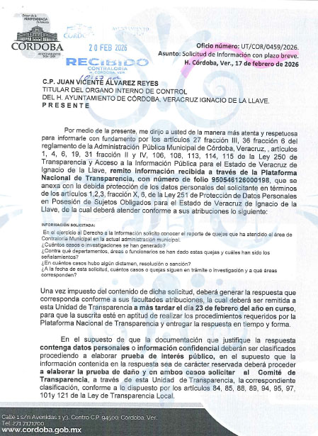 El documento oficial OIC/JIRS/P/0025/2026, firmado por el Jefe de Investigación de Responsabilidades de Servidores Públicos, César Morales Pérez, confirma que en la actual administración existen nueve quejas y/o denuncias administrativas que han derivado en el mismo número de investigaciones.